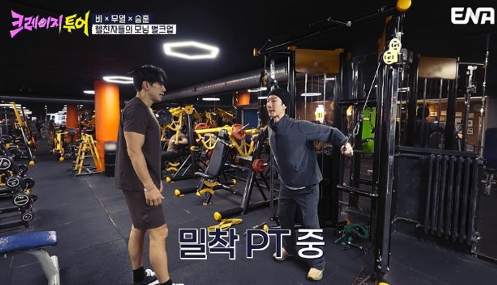 [사진 설명: 이승훈, 제 발로 호랑이 굴에? 비X김무열 지옥의 PT에 ‘동공 지진’ (‘크레이지투어’) 관련 주요 장면]
